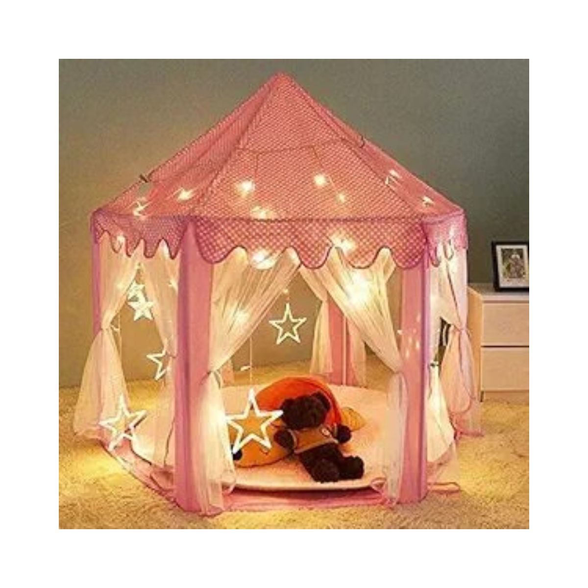 - Diseño Encantador: La carpa recrea la magia de un auténtico castillo medieval para princesas, con detalles que despiertan la imaginación y fomentan el juego creativo.